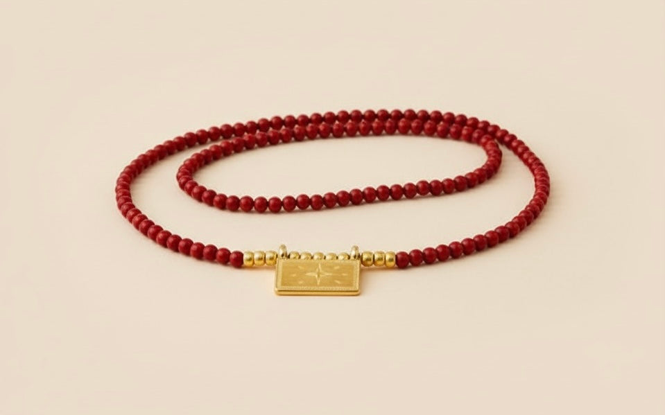 Collier ou le rouge se fait passion et l'or, l'éternité.