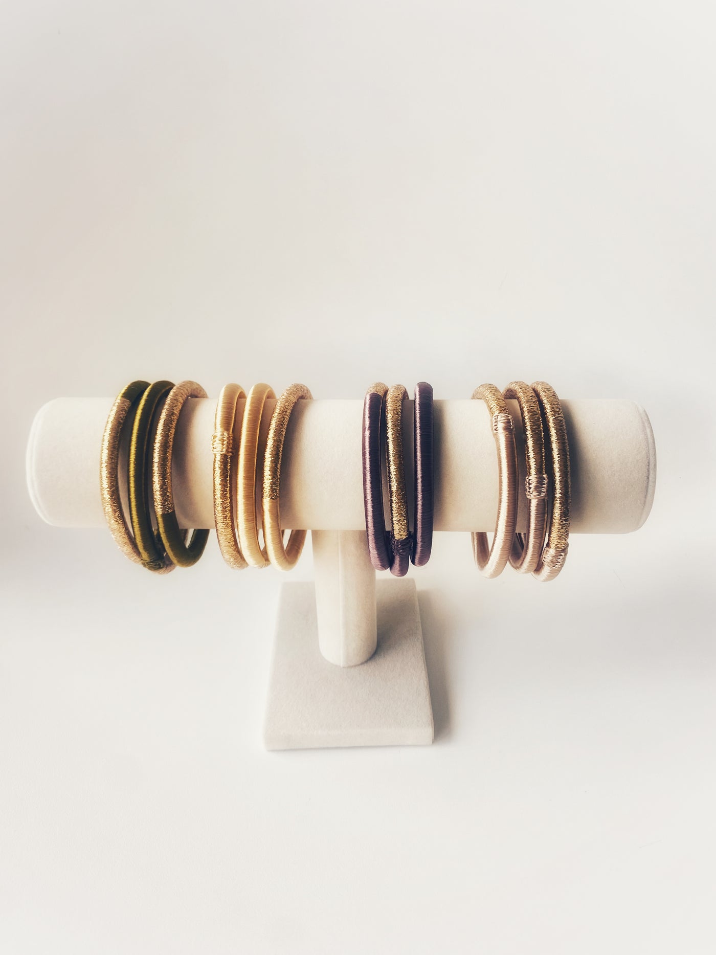 Jonc bouddhiste souple et délicatement rempli de feuilles dorées décoratives