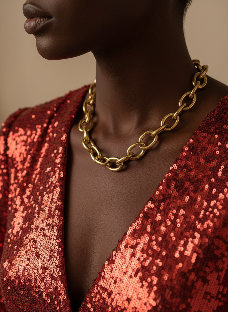 Ce collier à mailles épaisses en acier inoxydable doré allie élégance et caractère. Sa finition brillante et son design intemporel en font un indispensable à superposer ou à porter seul.